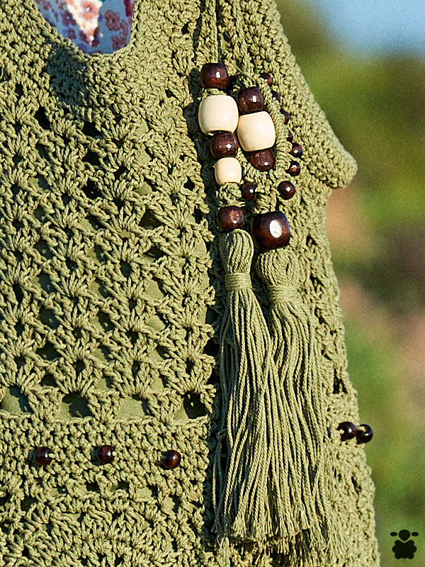 Bolso de estilo boho chic trenzado en macramé en color verde. Un diseño precioso con un forro interior de tela con cierre. Incluye detalles étnicos: cuentas de madera, pompones. Combina muy bien con vestidos boho, pantalones cortos, vaqueros, es un bolso todo muy versátil.