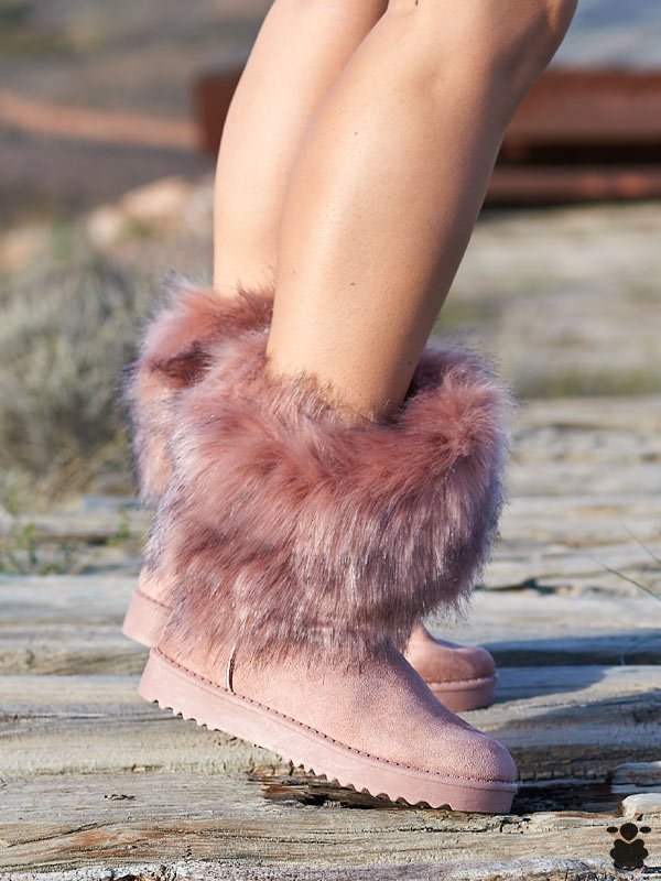 Botas boho chic con pelo por dentro y por fuera, en color rosa. Estas botas bohemias son ideales para el frío, son muy cómodas, espectaculares, vienen con forro por dentro con pelito para hacernos inmunes al frío.