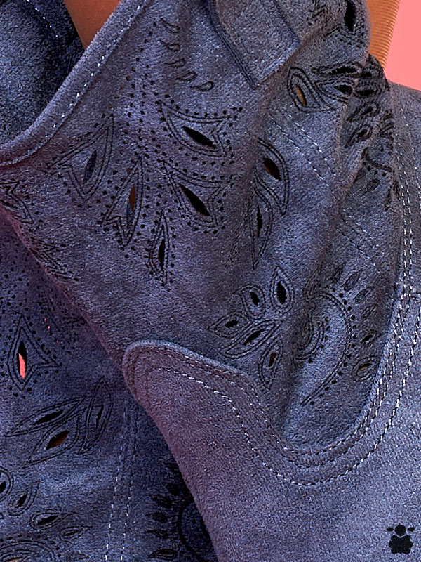 Botines camperos para mujer con efecto serraje en color azul. Detalles de calados y grabados en la caña, material textil de alta calidad.