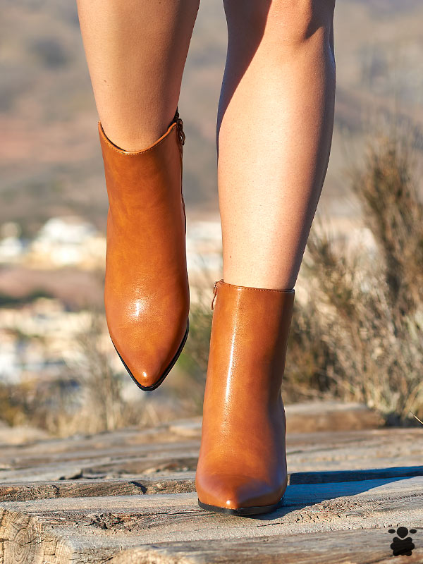 Botines camperos de mujer con tacón alto en color camel muy elegantes. Este modelo de botín de tacón alto viene forrado con pelito por dentro, su tacón de 9,5 cm le da elegancia y estiliza la pierna, dispone de una cremallera interior para facilitar la puesta. Ideales para ocasiones donde la elegancia es primordial.
