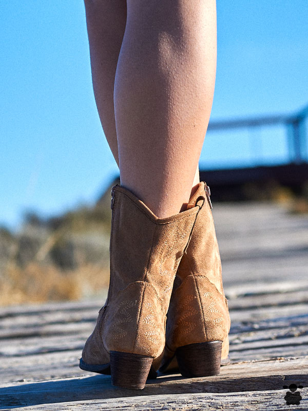 Redescubre el encanto del Oeste con nuestro Botín Cowboy Camel Plazanorte. Diseñado para la mujer moderna que no quiere sacrificar el estilo por la comodidad. Estos botines camperos cuentan con un tacón bajo de 4.5 cm, perfectos para llevar durante todo el día. El color camel suave y versátil se complementa con costuras de inspiración western, brindando un acabado auténtico y chic. Los tiradores laterales y la cremallera interior ofrecen una funcionalidad práctica sin restar estilo. Ideales para cualquier amante del estilo vaquero con un toque contemporáneo.