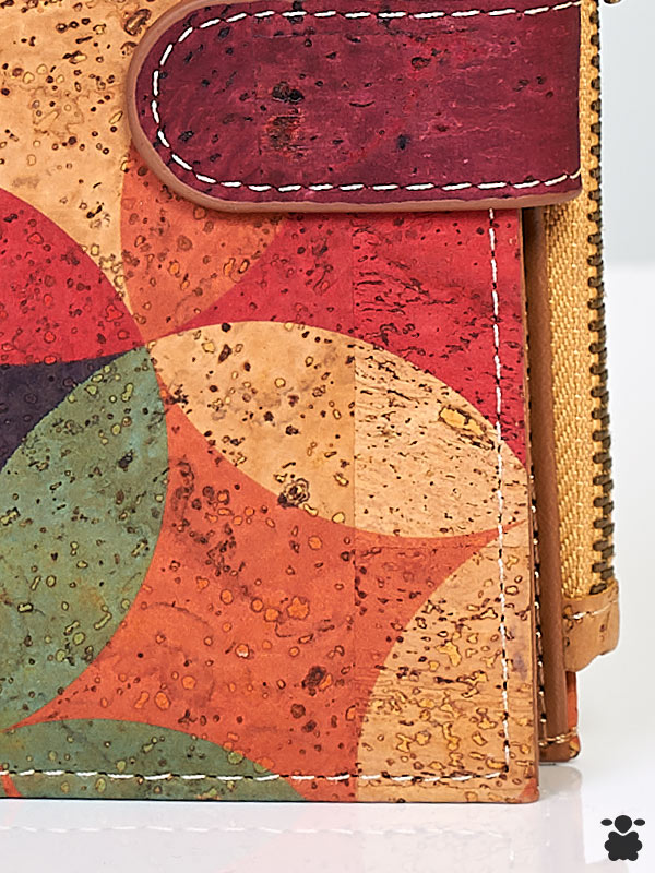 Cartera con estampado de flores, fabricada con corcho natural 100% orgánico.