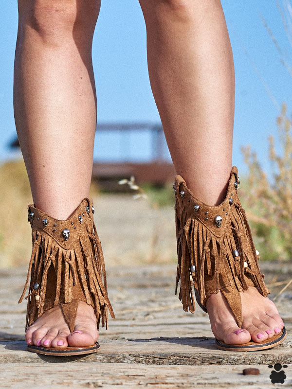 Son una excelente opción para los meses de primavera y verano. Ya sea que desee un estilo ibicenco, hippie o tradicional, estas espectaculares botas sandalias con calaveras seguramente la llevarán a otro nivel. Combinan con todo, desde un vestido bohemio hasta prendas más hippies.